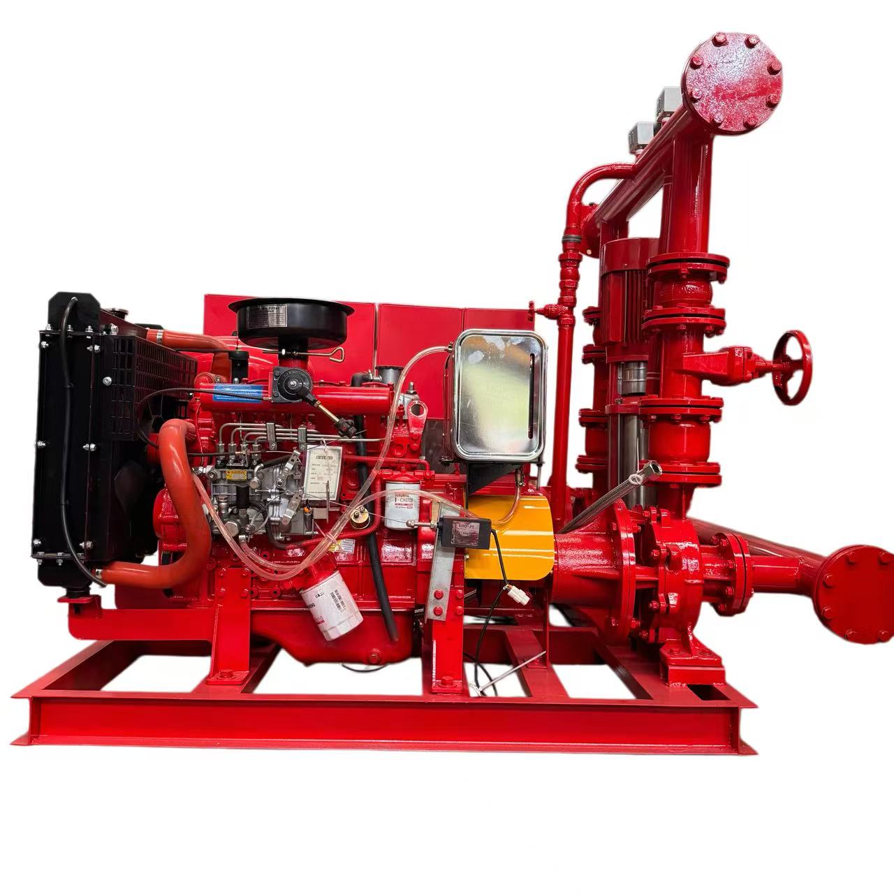 The EDJ dual-power fire pump set is a complete fire fighting system integrating electric fire pump, diesel engine fire pump, jockey pump, pressure tank and control cabinet. Designed for emergency fire water supply, it fully complies with NFPA 20, GB6245 and other international standards, ensuring 24/7 reliable operation for fire protection systems.